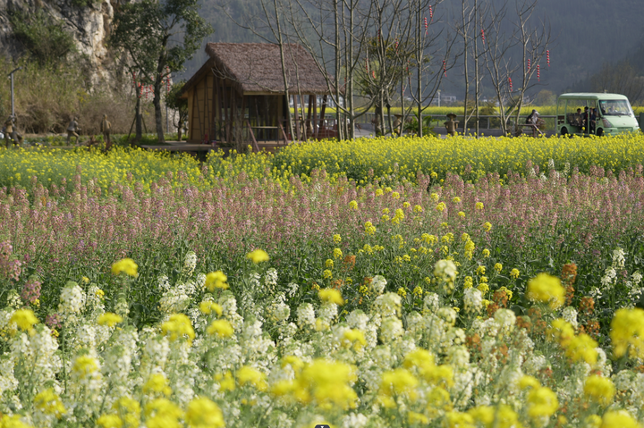 近日,万峰林的油菜花成为兴义市民和游客的热门打卡地,在万福村有一片彩色油菜花,为金灿灿的油菜花海增添了一抹别样的色彩。