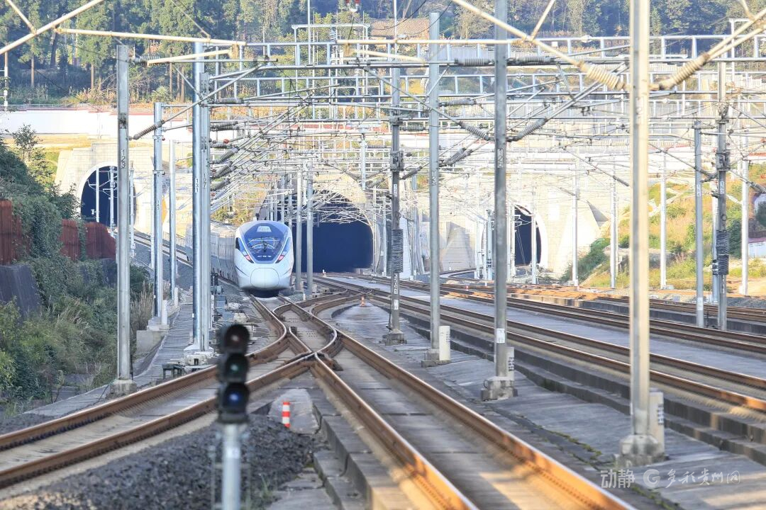 而贵州铁路建设者们用日复一日的坚守和年复一年的拼搏,让一条条钢铁巨龙穿梭于黔岭之间,让贵州3800余万人民在家门口便能乘高铁,感受“贵州速度”和“贵州温度”。