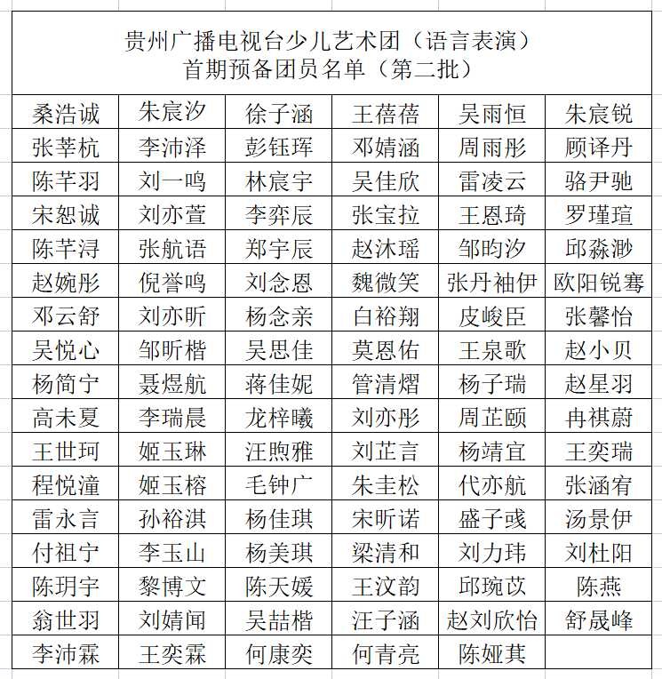 贵州广播电视台少儿艺术团(语言表演)首期预备团员名单(第二批)新鲜出炉!