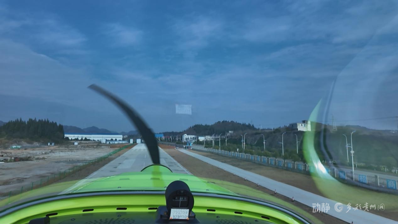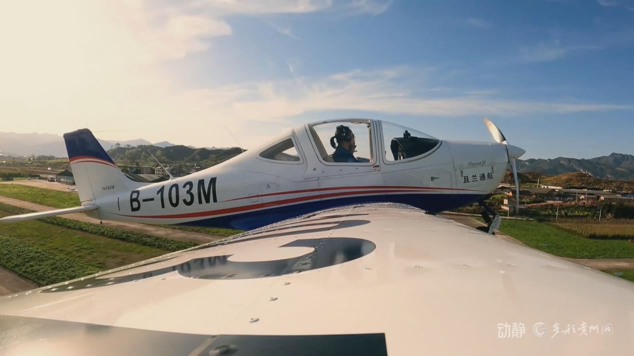 在镇宁启黔通航的“阿若拉”固定翼飞机上,飞行员正带着体验者从营地起飞。这里不仅是安顺首家拥有飞行培训与载人体验资质的通航营地,更是镇宁低空经济的核心支点。