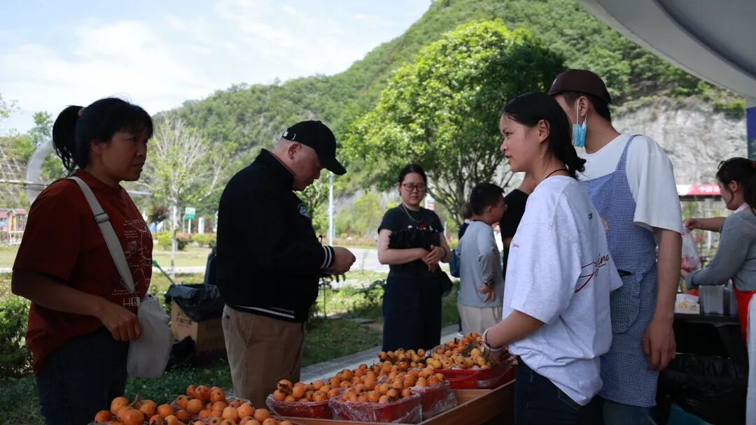 游客在“天空之桥”景区购买当地农产品