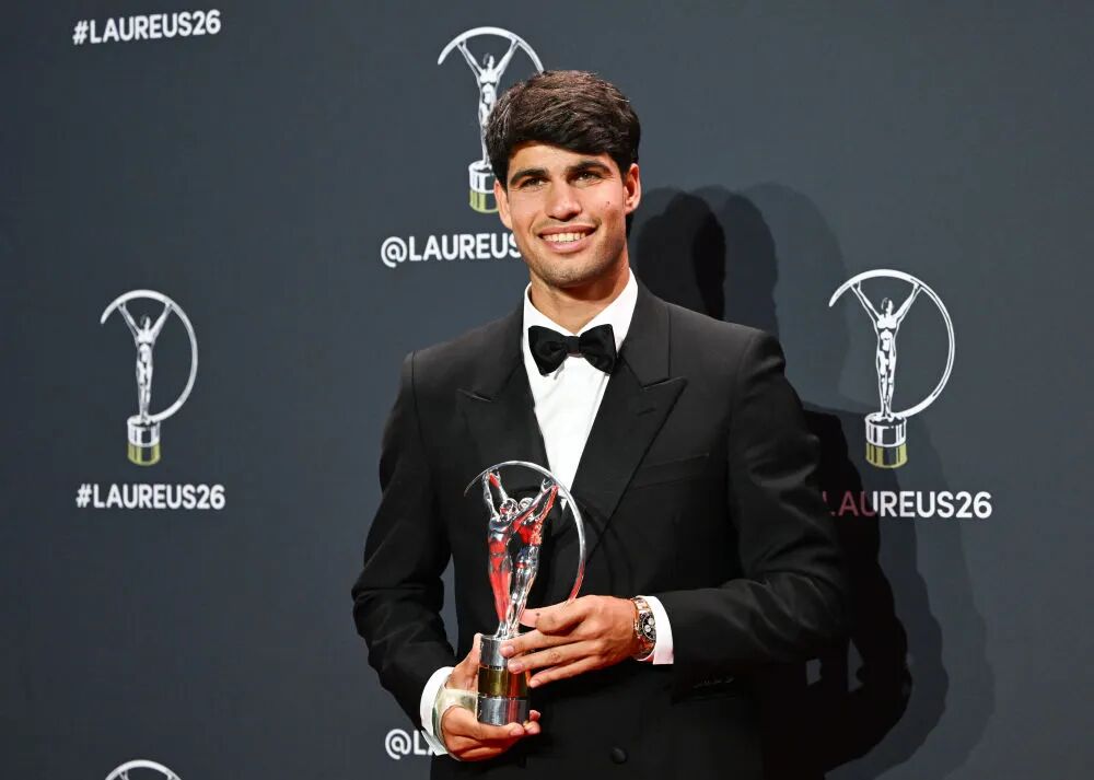 4月20日,阿尔卡拉斯获得2026劳伦斯世界体育奖年度最佳男运动员奖。新华社记者 程敏 摄