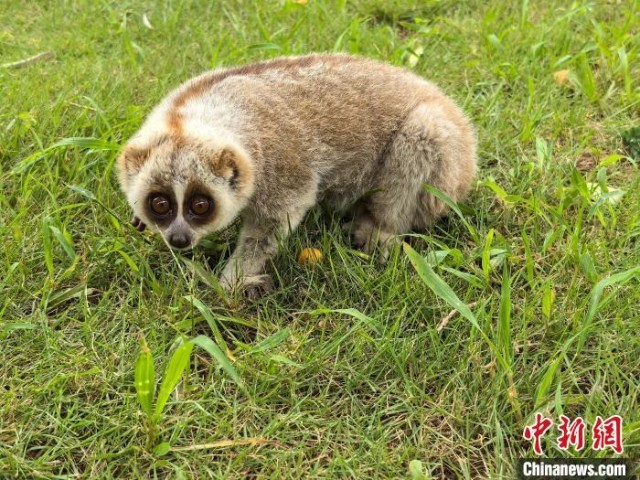 民警初步观察后判断其没有明显受伤痕迹,投喂新鲜水果也能正常进食,且行动自如,可能是夜间觅食过程中迷路,误入了口岸限定区域。因担心它受到伤害,民警及时联系林草部门工作人员,并将其带回单位悉心照顾。后经鉴定,这只动物系国家一级保护动物蜂猴,属于濒危珍稀野生动物。