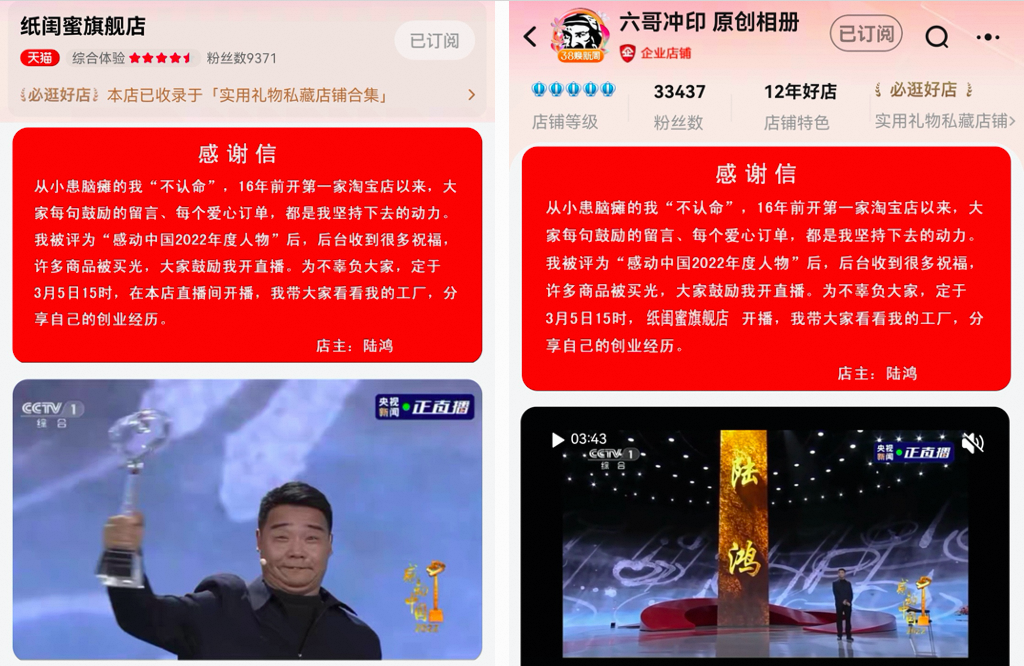 (淘宝店主陆鸿入选“感动中国”2022年度人物)