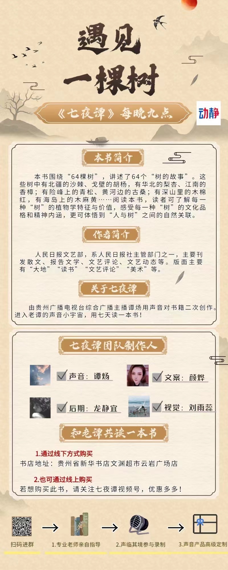进入谭炀的声音小宇宙,用七天听一本书。《七夜谭》第150夜。 疫情下的贵阳,秋已至,天转凉。静下来,用阅读对抗不确定,从树身上获得生命的感悟,感受它带来的恒常与希冀。 今夜,跟随老谭的声音,遇见生命里的幸福树。 每个人都要面对“应该”这个词——你应该这样,你不应该那样...... 但作者却对树说:我想和你一样,和所有的植物一样,不离开土地,不张扬,不索取,不争夺,一生都保持植物的优雅,可以吗?树没有回答,但是树的生长方向已经给出了答案,树叶朝着阳光倾斜,时时冒出缎子般的新叶…… 树,你怎么这么像我呢?