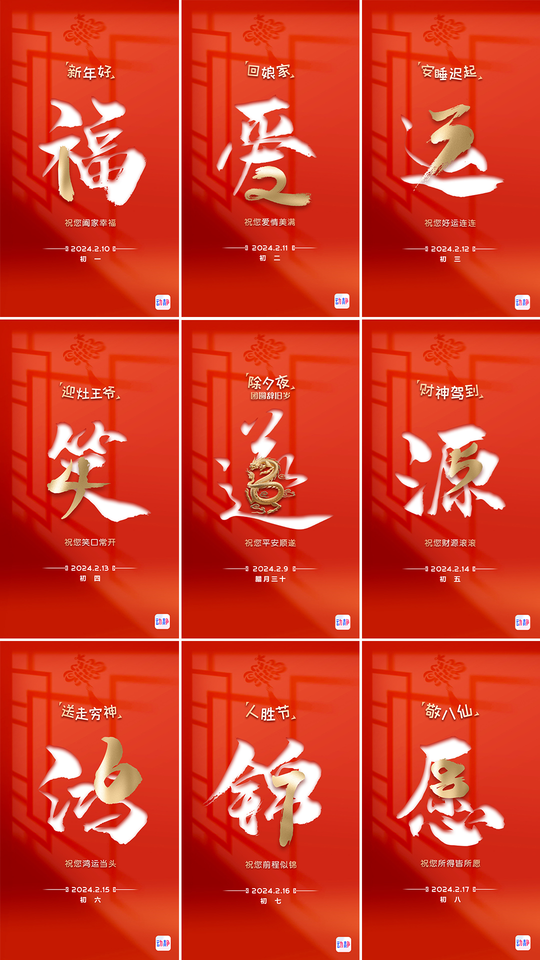 除夕至初八,在动静APP推出创意春节文字系列开机图;