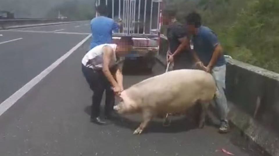 三头肥猪掉落高速隧道 高速交警快速处置消除隐患