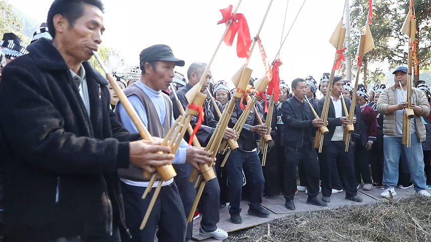 近日,贵州省黔东南丹寨县扬武镇乌雄村乌湾自然寨迎来一年一度的“吃新节”,来自周边村寨的苗族同胞盛装打扮,欢聚一堂。芦笙场上,苗族汉子吹奏芦笙,苗族姑娘跟随芦笙节奏跳起芦笙舞,共同庆祝丰收的喜悦,欢度苗族传统佳节。