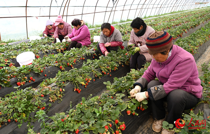 草莓种植田间管理。人民网记者 王玉兴摄
