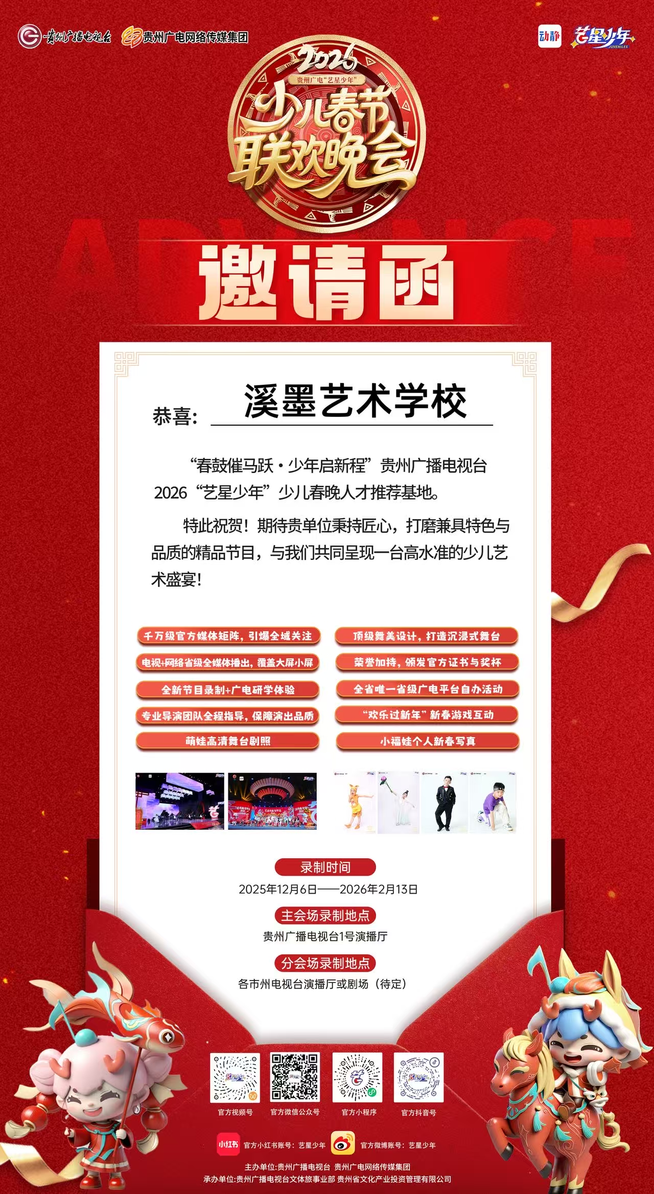 随着活动日期日益临近,溪墨艺术学校的全体师生满怀信心。他们笃定,凭借九年的专业积累以及对艺术教育的热忱,必定能在贵州广电2026“艺星少年”少儿春节大联欢活动的舞台上留下精彩时刻,为全省观众呈上一场高水准的艺术盛宴,以匠心与才华照亮孩子们的艺术未来。