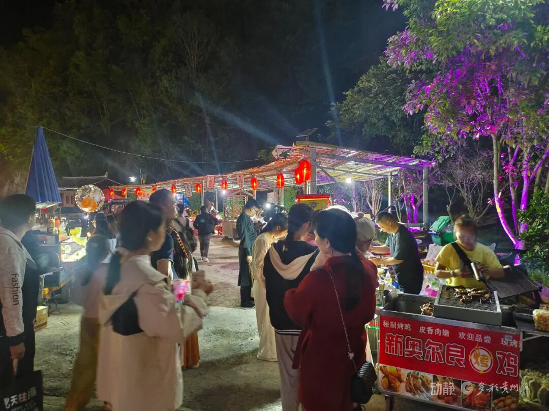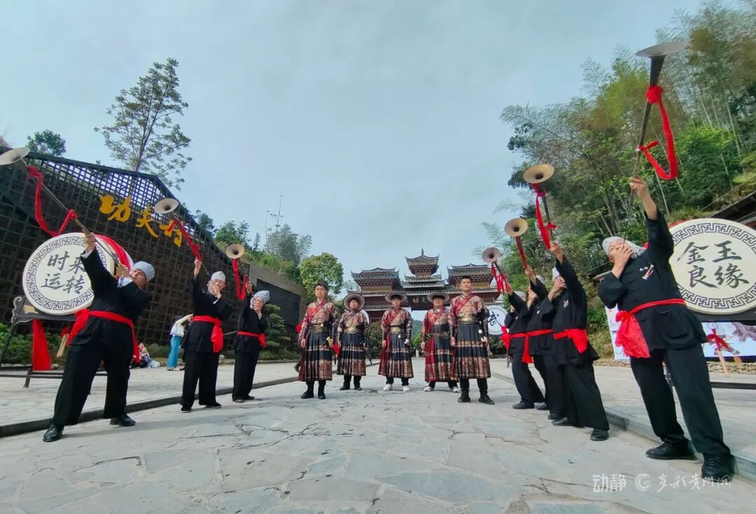 非遗绝技、民俗表演与沉浸式体验同步开展,《燕娘说媒》生动演绎侗族婚俗。六大打卡点、五大赛事全面开放,游客化身“江湖侠客”,在竹影藏锋、镖行天下、洪门传承等场景中闯关打卡,体验射箭、飞镖、竹林练剑等项目,沉浸式感受传统武术与侗族文化的独特魅力。夜幕降临,功夫音乐会燃情开唱,《铁血丹心》等经典武侠旋律点燃全场,侗族长桌宴香气四溢,文体旅融合让乡村夜晚活力四射。