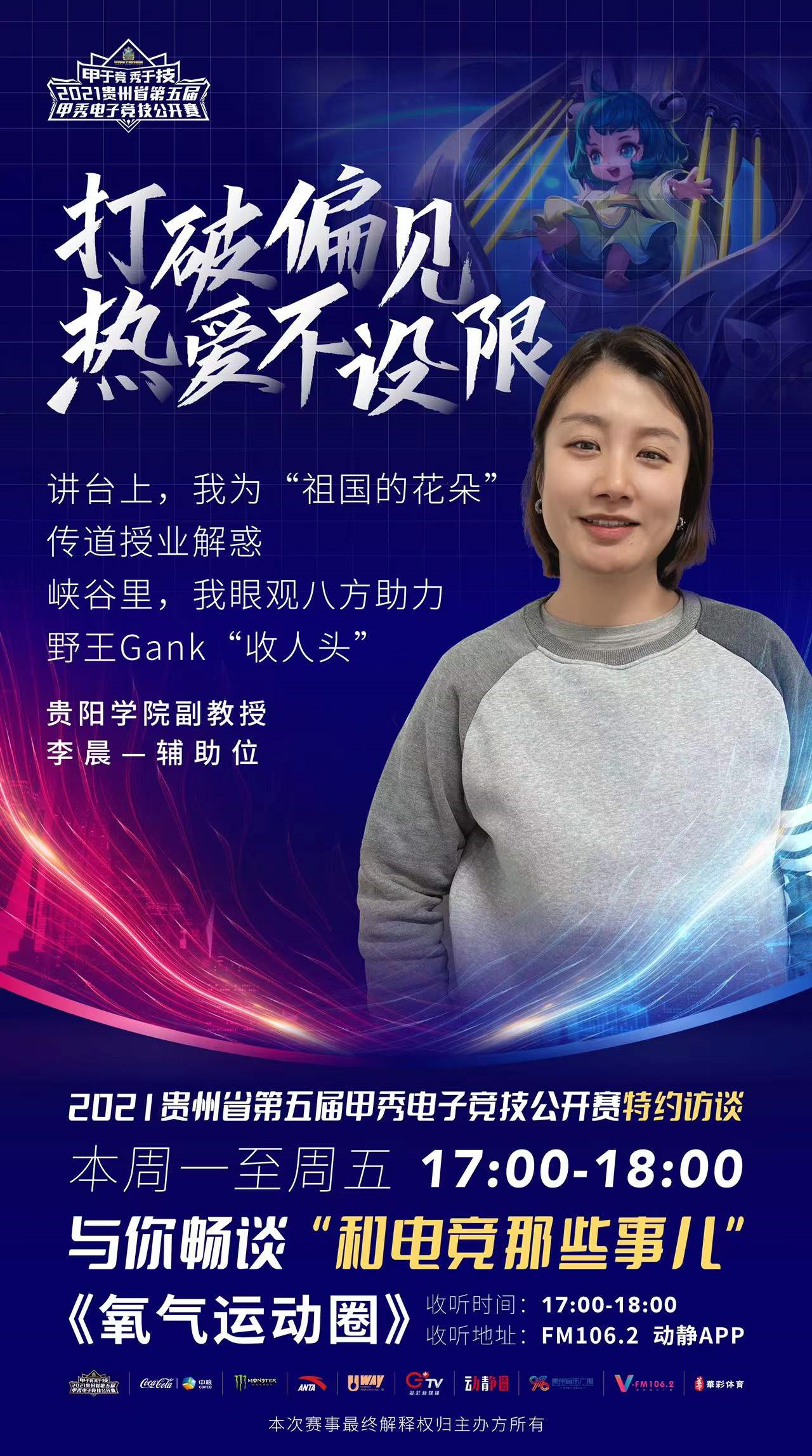 2021贵州省第五届甲秀电子竞技公开赛特邀访谈如约而至!本周一至周五17:00-18:00,FM106.2「氧气运动圈」,一起畅谈“和电竞那些事儿”!