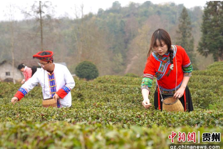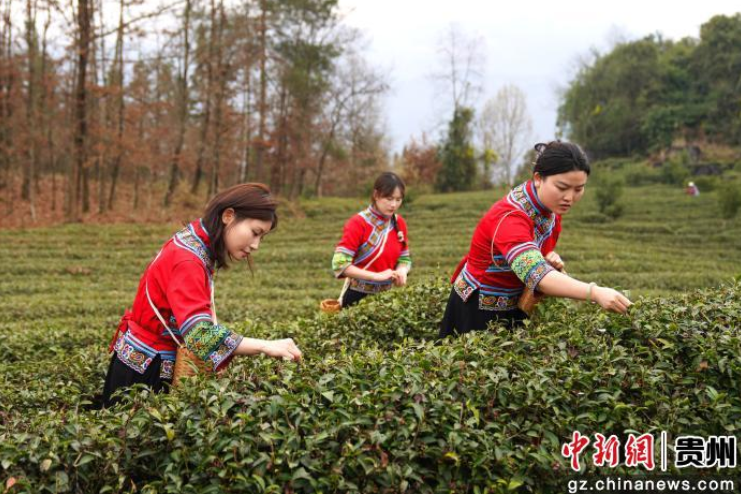 近日,贵州省务川仡佬族苗族自治县红丝乡4000余亩茶叶基地里,一垄垄茶树整齐排列,嫩绿茶芽长满枝头,春风拂过,缕缕茶香沁人心脾。当地茶农抢抓农时,采摘春茶,及时供应市场。