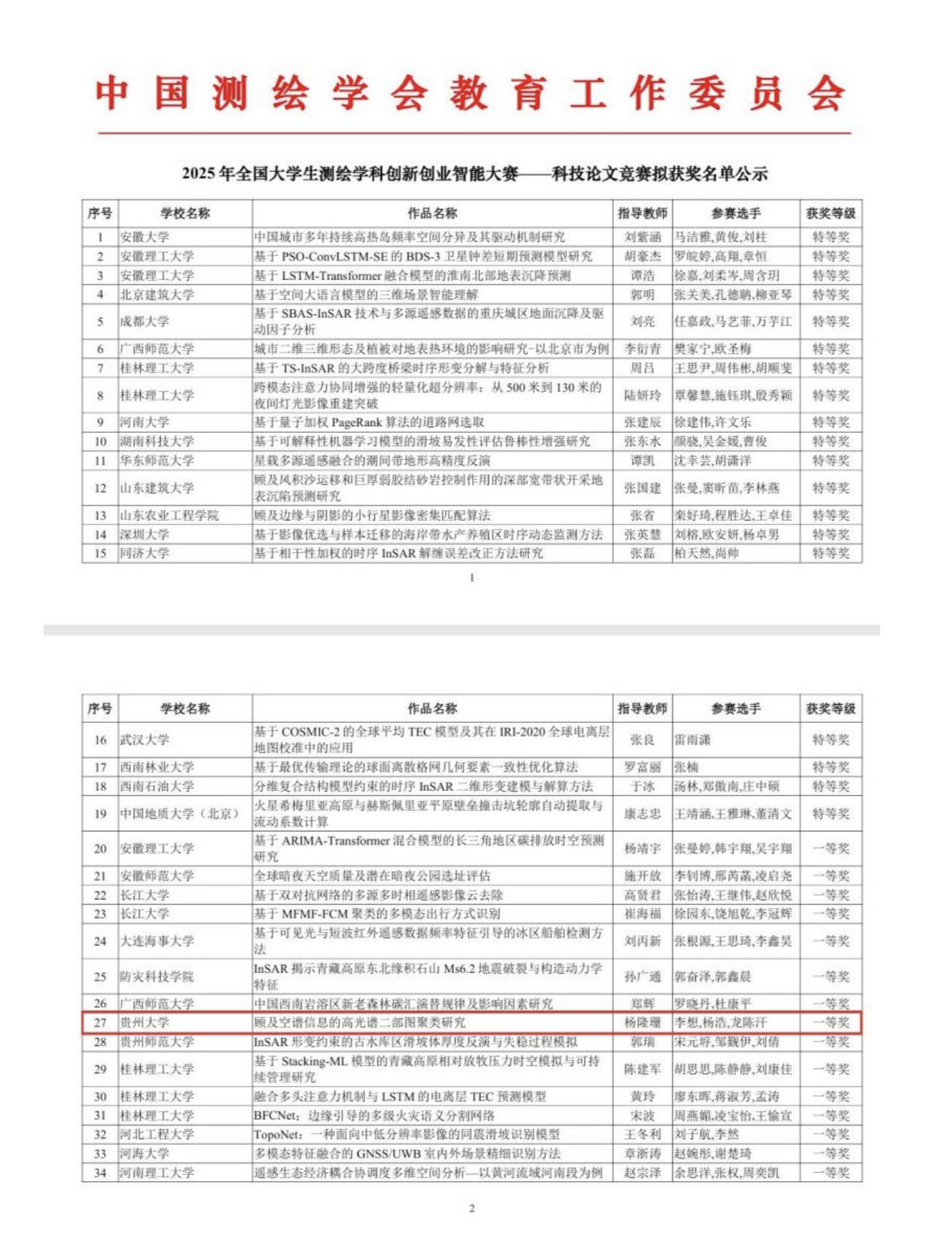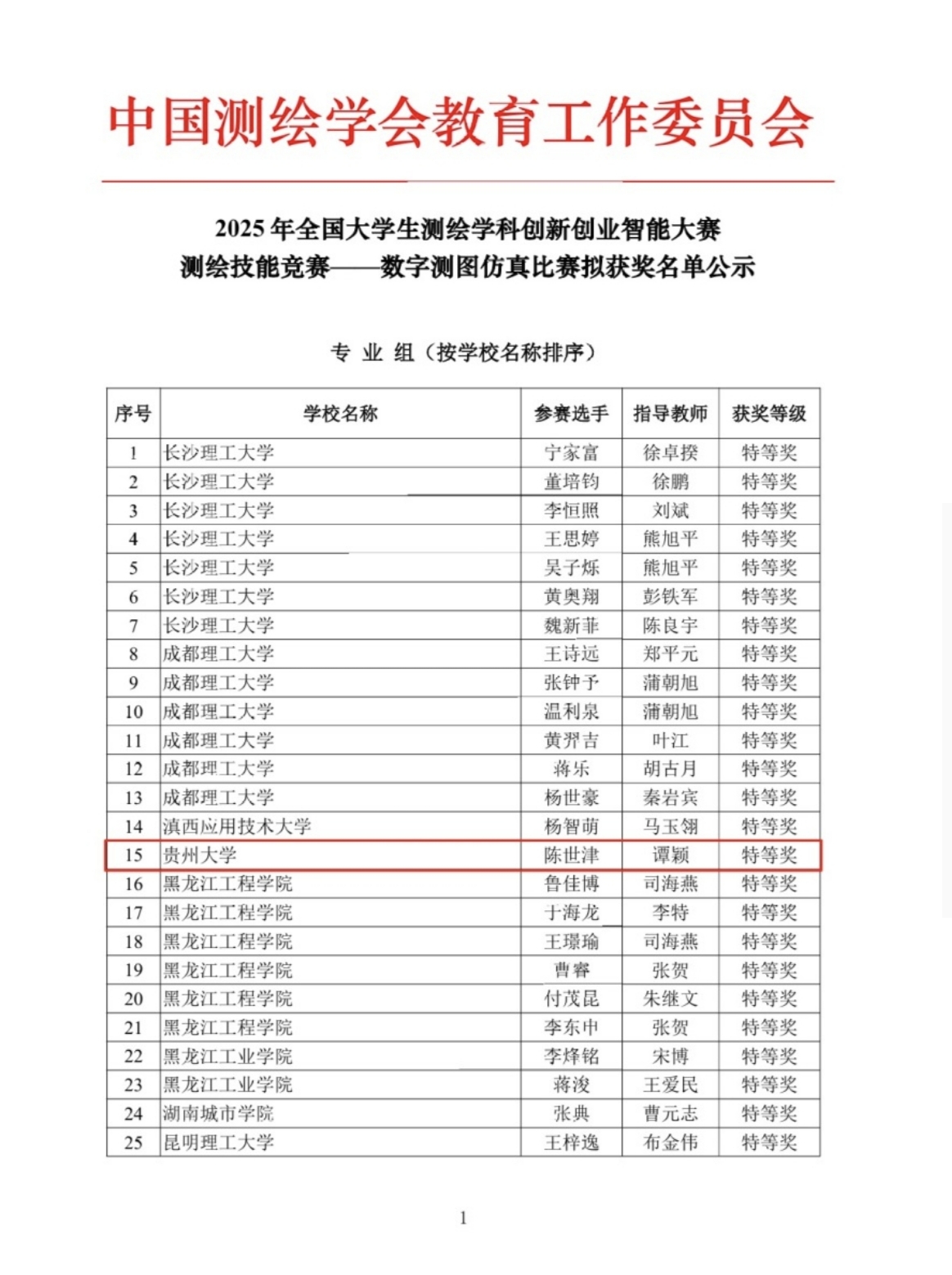 教育黔沿|贵州大学矿业学院学子在 2025 年全国大学生测绘学科创新创业智能大赛中斩获佳绩