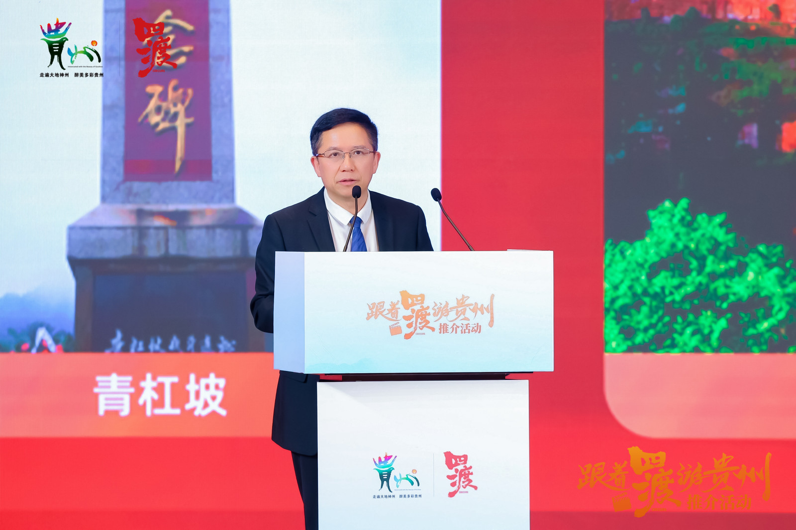 贵州省旅游产业发展集团有限公司副董事长、总经理龙丛在作推介
