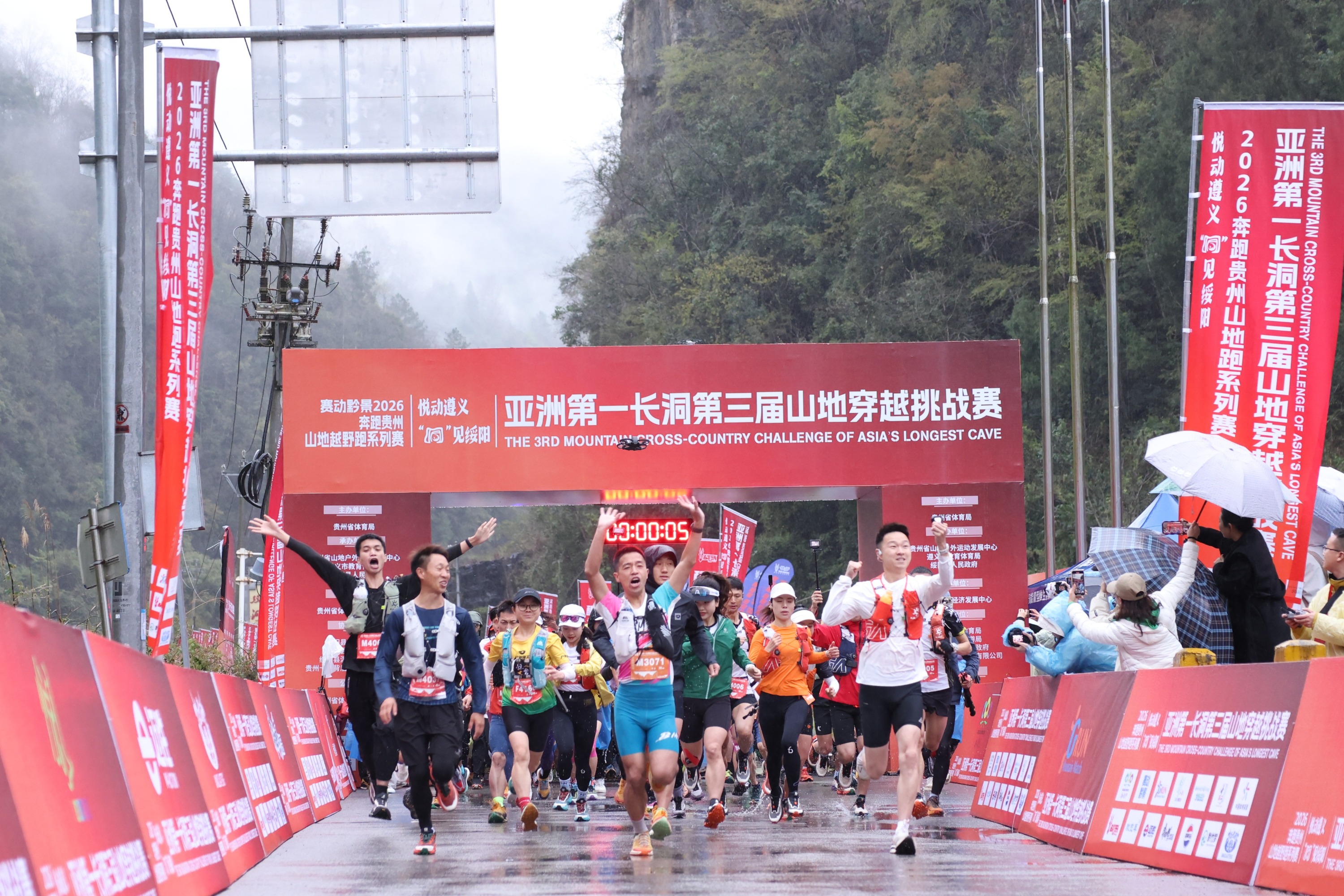 3月15日,2026年“奔跑贵州”山地越野跑系列赛暨悦动遵义“洞”见绥阳——亚洲第一长洞双河洞第三届山地穿越挑战赛在绥阳县双河洞景区举行。来自全国各地的1186名越野跑爱好者齐聚黔北喀斯特秘境,共同开启一场融合体育竞技、地质探秘与文旅体验的精彩赛事。