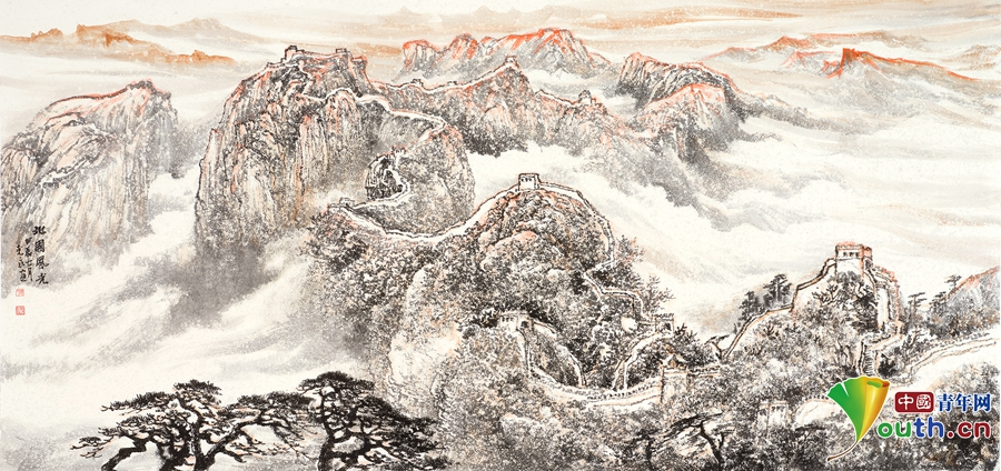 参展画作《长城春熙图》。