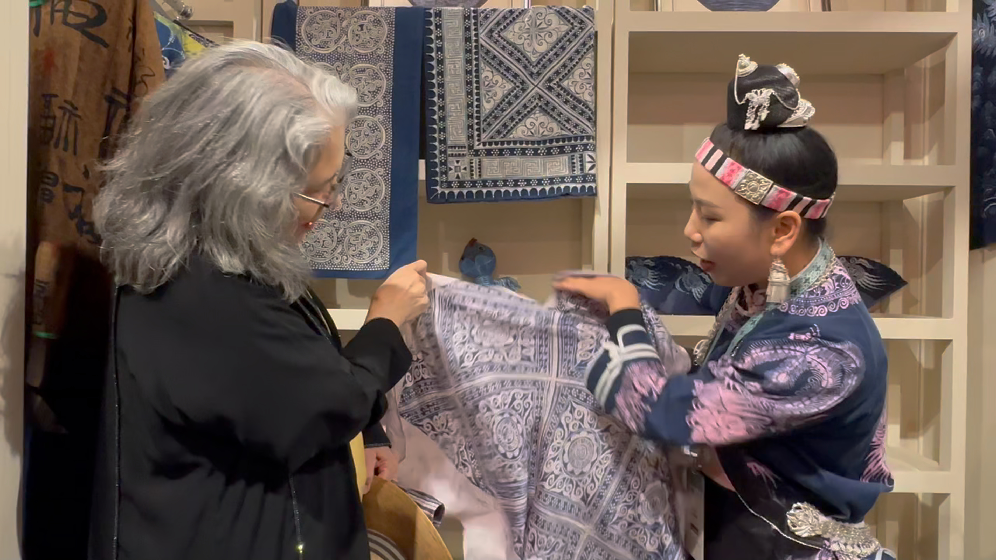 “开馆不到一小时,就已接待数百人,没想到我们苗族的蜡染作品在这里这么受欢迎。”张义苹说。