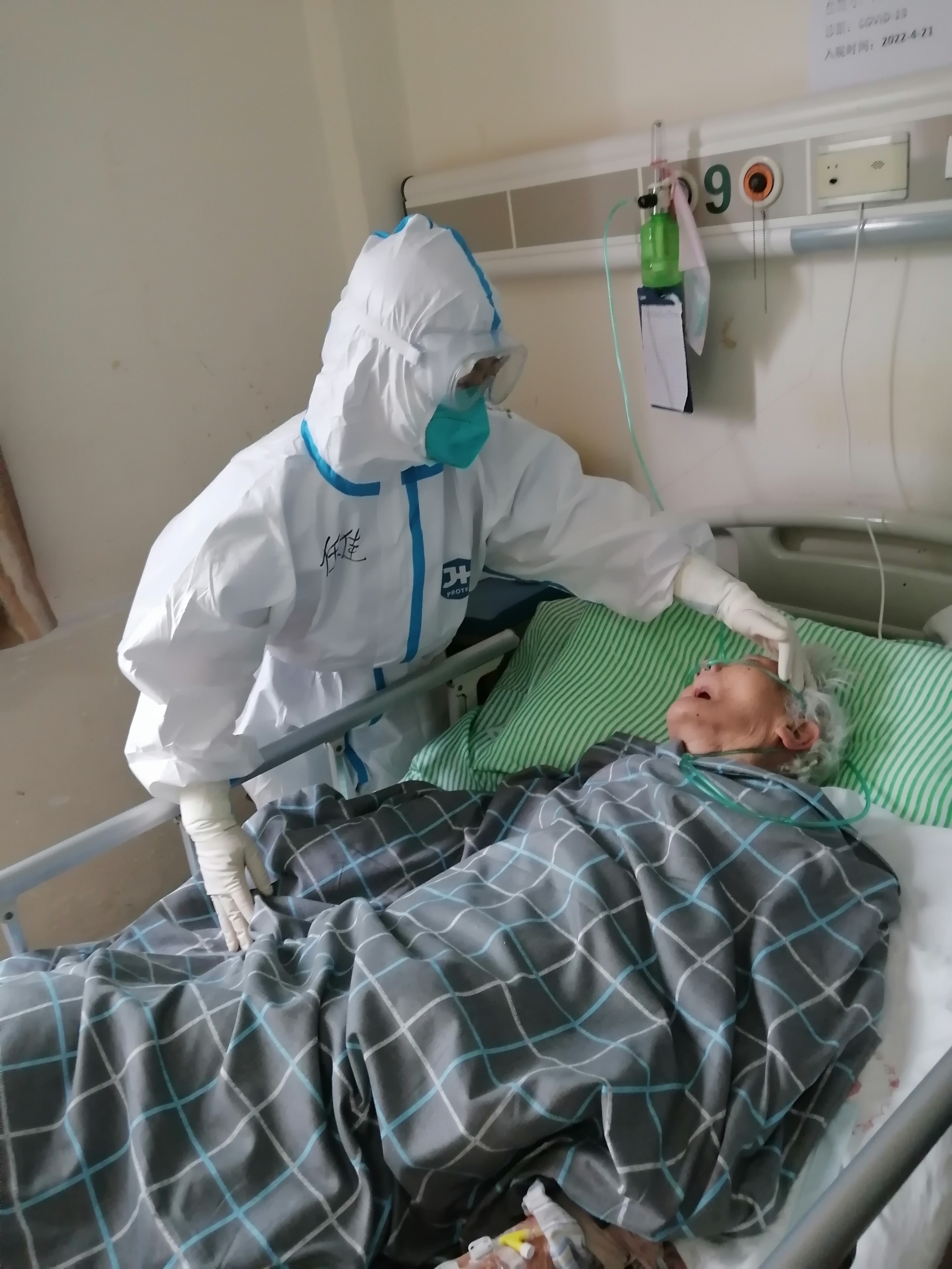 2020年新冠疫情来势汹涌,新闻中每一条消息都牵动着任佳的心,在武汉疫情暴发时,她主动请缨,但因驰援队伍人员有限未能成行。2022年初,上海疫情严峻,她再次请缨,成为贵州省援沪医疗队中的一员。被分配到上海市第八人民医院呼吸内科后,科室里的患者大多是有基础疾病的老年患者,每天除了疾病护理,如输液、打针、抽血等常规操作之外,还要予以生活护理,如换床单被套、打饭等等,虽然每天下班时闷热防护服下的她早已全身湿透,但看着病房里那一张张充满希望的笑脸,听着那一声声“谢谢贵州姑娘”的由衷谢意,她的心是温暖的。拥有丰富临床一线工作经验的她,将责任与使命深深刻进骨子里,她细心照料病人,时刻关注患者的病情不曾有一丝松懈。