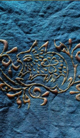 然后在自织的土布上绘上精美的图案,将枫脂和牛油按比例混合装在容器里,置于热草木灰上以保持恒温。