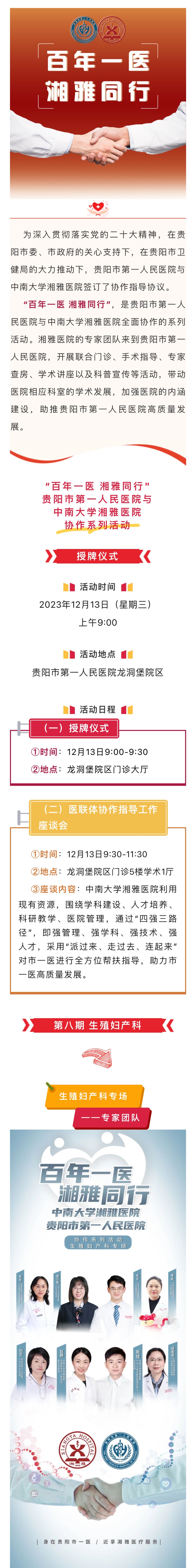 【活动预告】| 中南大学湘雅医院雷光华院长一行赴贵阳市第一人民医院开展“百年一医 湘雅同行”协作指导系列活动