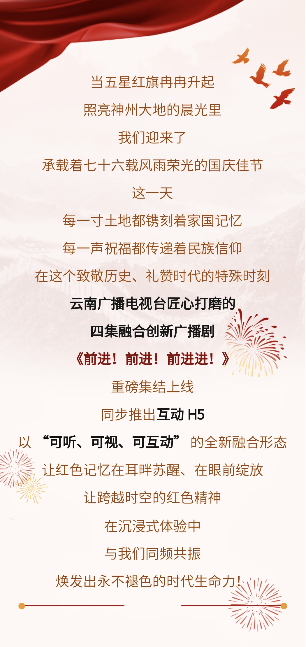 【互动H5】可听可视可互动!广播剧《前进!前进!前进进!!》沉浸式感受奋进力量 七彩云端 | 2025-10-01 09:38 点击进入互动H5在声波 动画与漫画的交织中徜徉共同解锁国歌诞生密码↓ ↓ ↓H5融合音频、漫画、AI动画、互动体验于一体。在这里,广播剧的青春之声、专属漫画的时代画卷、解锁国歌诞生密码的AI动画无缝衔接。您只要轻滑屏幕,一把1935年的小提琴与黑胶唱片将带你穿梭三层时空,在声波、动画与漫画的交织中徜徉。每一毫米滑动,都是与历史的对话;每一次点击,都是与先辈的共鸣,让国歌从教科书上的符号,变成有温度、有细节、可触碰的鲜活力量,让奋进精神在互动中传承。 编辑: 曹轶 责编: 李佳 编审: 熊莺