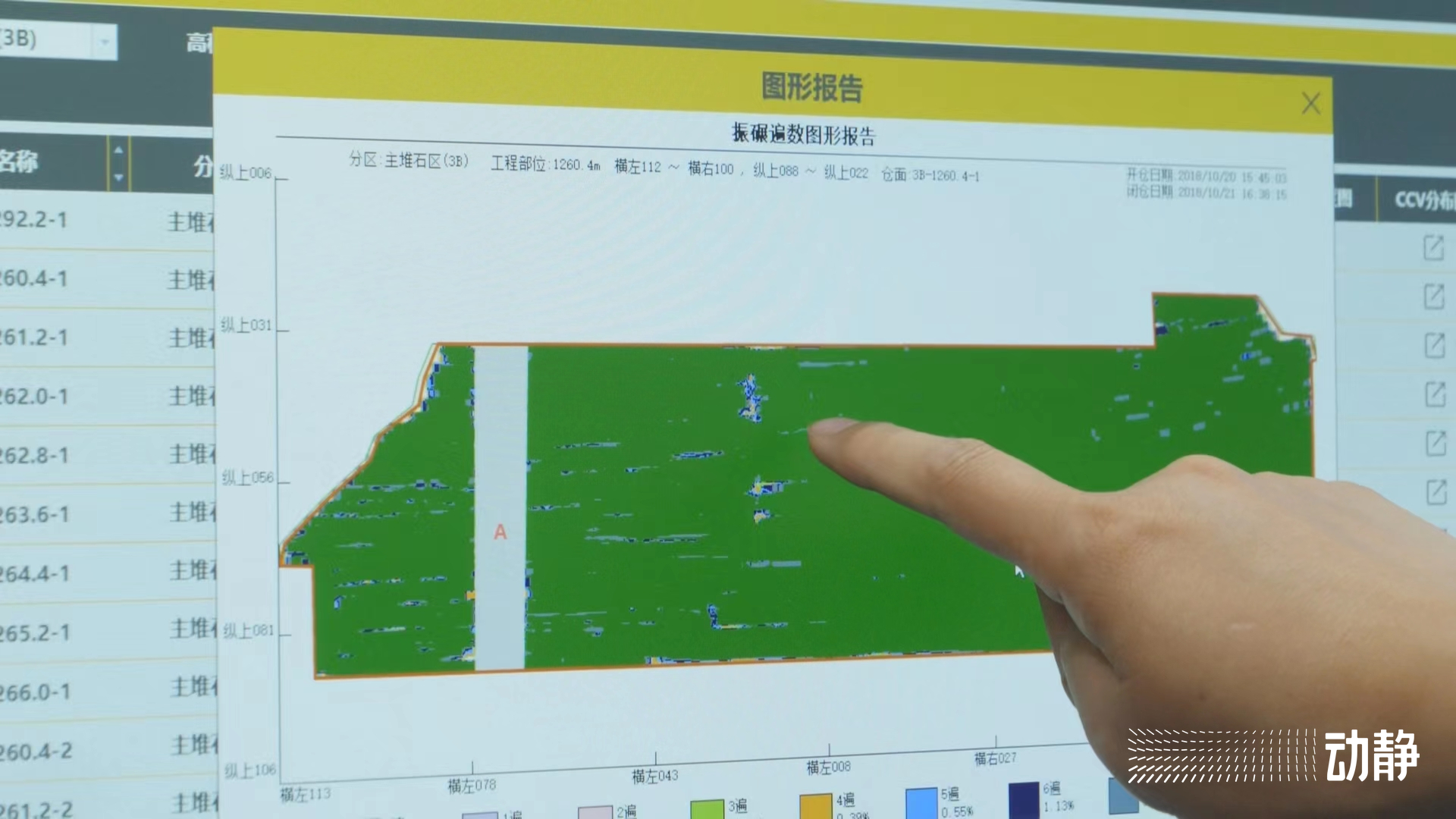 夹岩水利枢纽工程公司水源建管部蔡月辉向记者展示了数字大坝的碾压质量监控系统:“通过监控碾压机的频率来看碾压是否达标,你看深绿色的区域就是达到我们要求的。到目前为止大坝的沉降值是在53公分,碾压质量很好。”