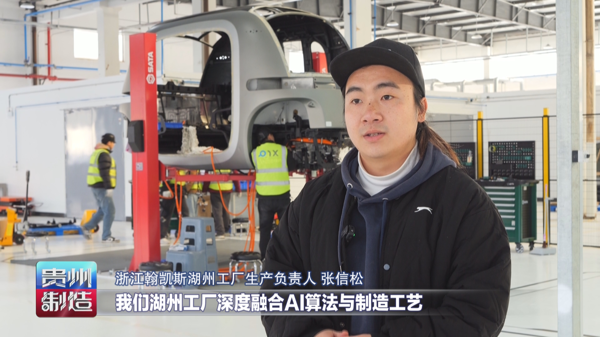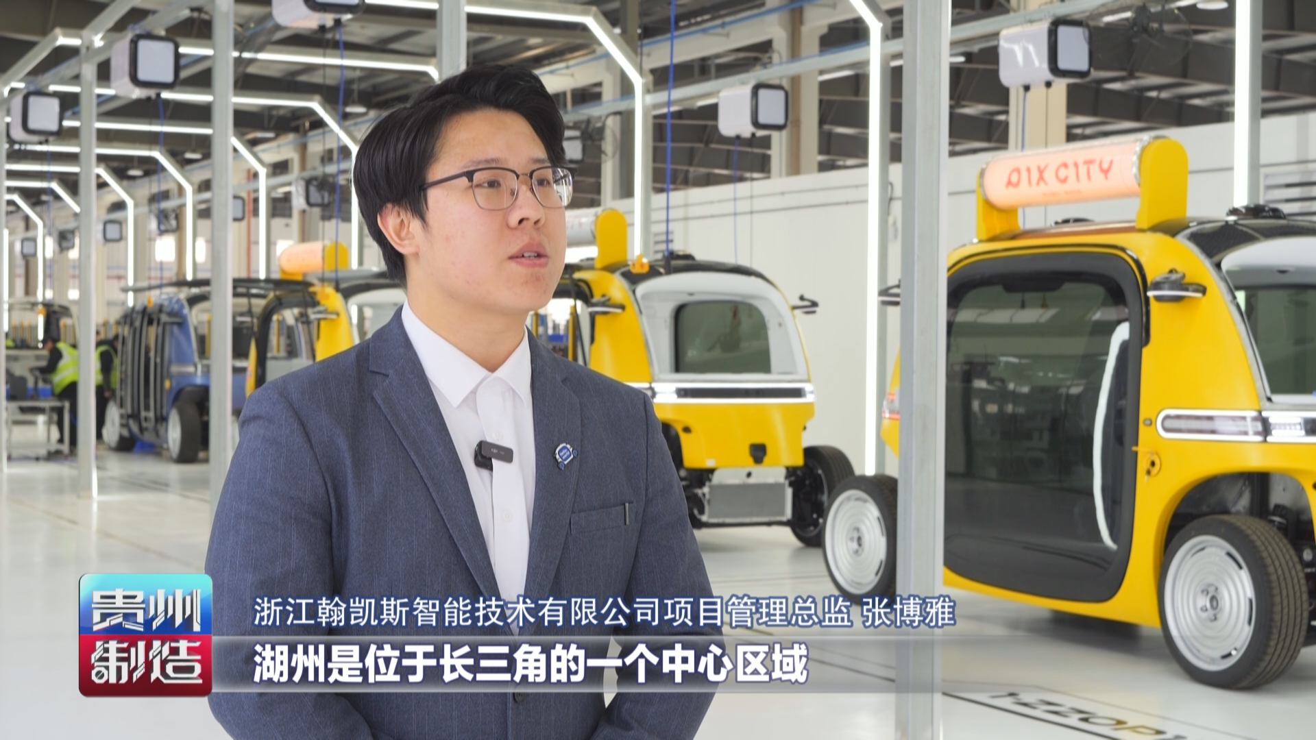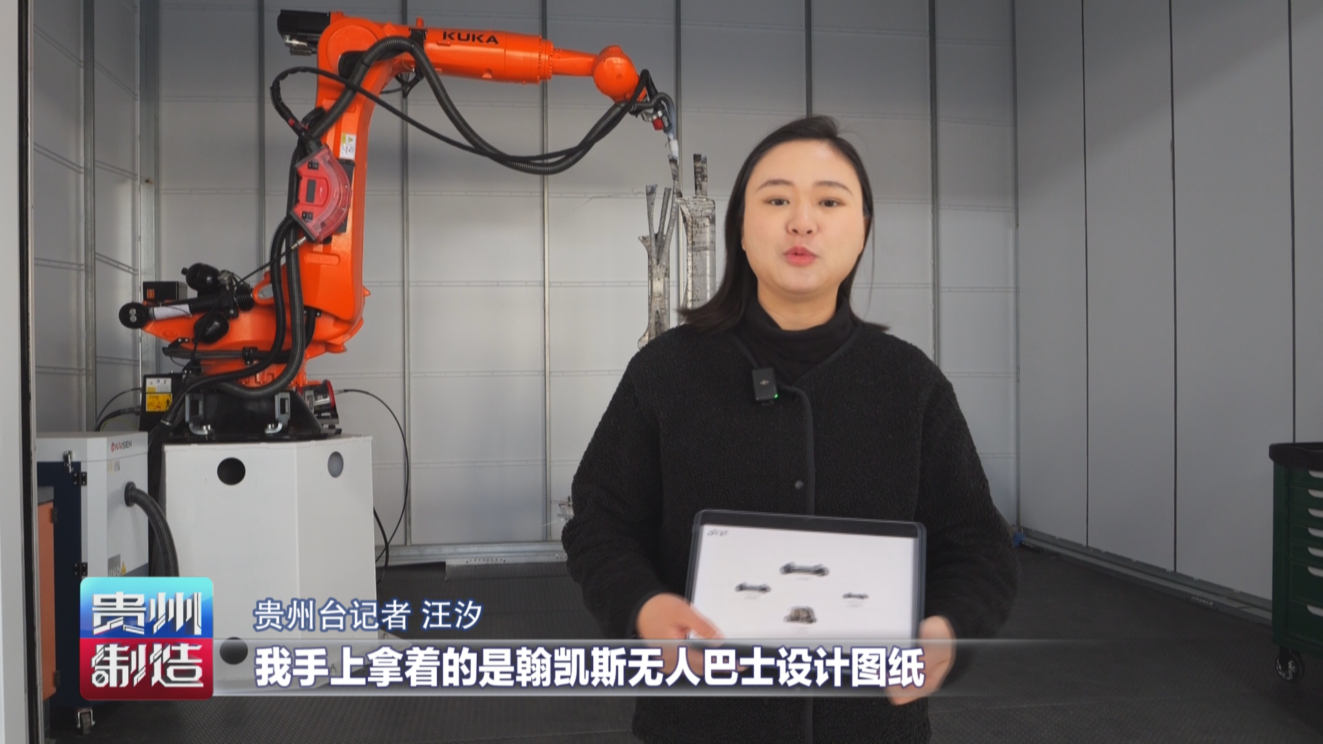 贵州台记者汪汐:我手上拿着的是翰凯斯无人巴士设计图纸,通过我身旁的金属3D打印,就可以完成图纸上汽车配件的生产了,再经过总装车间实时成型工作站的组装,一台智能汽车就能上市了。这儿是浙江湖州的翰凯斯数字智造工厂,从贵州的山谷,再到长三角的工业“心脏”,通过贵阳研发,湖州生产,海外交付,贵州智造拥有了走向世界的实力。