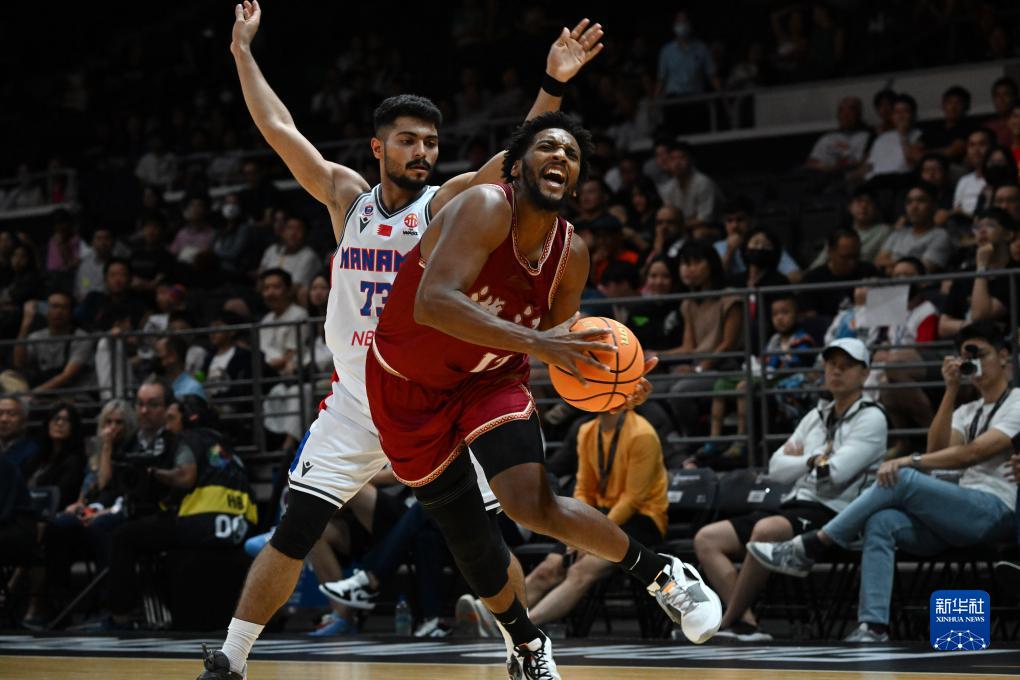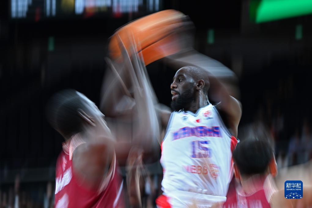 9月22日,浙江稠州金租队球员格利(左)与麦纳麦队球员波因特在比赛中。新华社发(邓智炜摄)