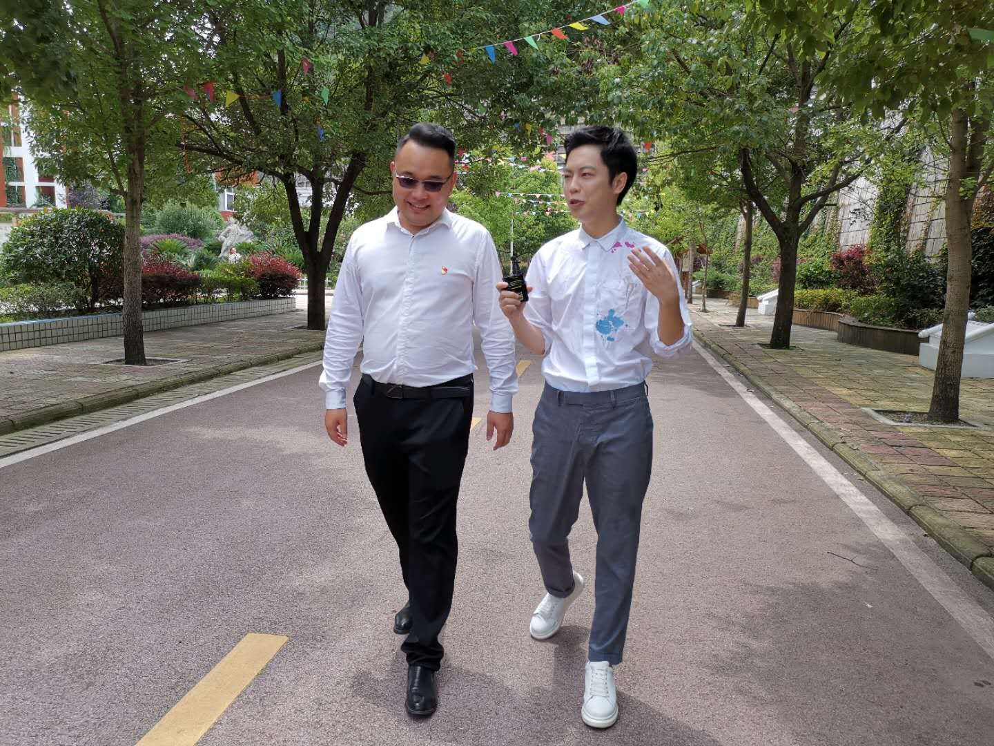 廖书记则向镜头讲述了学校围绕党建促教师发展,落实把党组织建在教研上,致力将党组织建设与科研建设相结合、党员队伍与师资队伍相结合、党建活动与中心工作相结合、发挥党组织战斗堡垒作用和党员先锋模范作用;努力打造教师成长平台。学校现有市级名师工作室1个,特区名校长工作室1个、名师工作室2个,校级名师孵化室15个,建校以来教师受各级表彰700余人次。学校围绕党建促进学生发展,固本溯源,扎实推进教育教学质量提升,以多种形式开展“红色”党建教育、“三线”精神教育、“辉煌”历程教育,增强学生“四个自信”;同时,挖掘学生兴趣爱好,培养学生动手能力、创新能力,学生参加各级比赛获奖、评优评先共计6000余人次。
