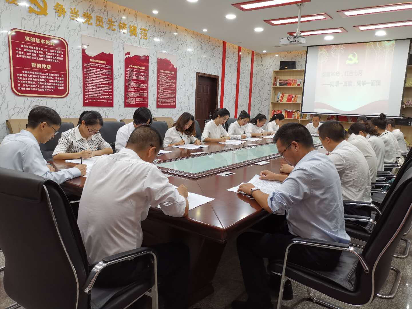 随后王校长还带领大家参观了学校的校史馆、党建活动室。在参观党建活动室时,学校的第三党支部正在开展党组织活动进行学习交流。王校长在此还送上了建党99周年的祝福语:“我们党走过99年光辉历程,带领中华民族不断走向富强。作为共产党员,作为教育工作者,我们将时刻铭记‘为党育人,为国育才’的初心使命,坚守三尺讲台,用心做教育,引领学生听党话、跟党走、感党恩,让学生成为有家国情怀、社会担当、才能卓越、勇于创新的人。祝福我们的党不断强大,永葆青春!”
