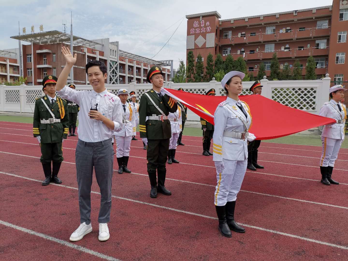 今天(7月16日)上午11:00六盘水市第二中学开启了“荣耀99,红色7月”——同唱一首歌,同举一面旗系列直播活动,动静APP对本次活动进行了全程直播。