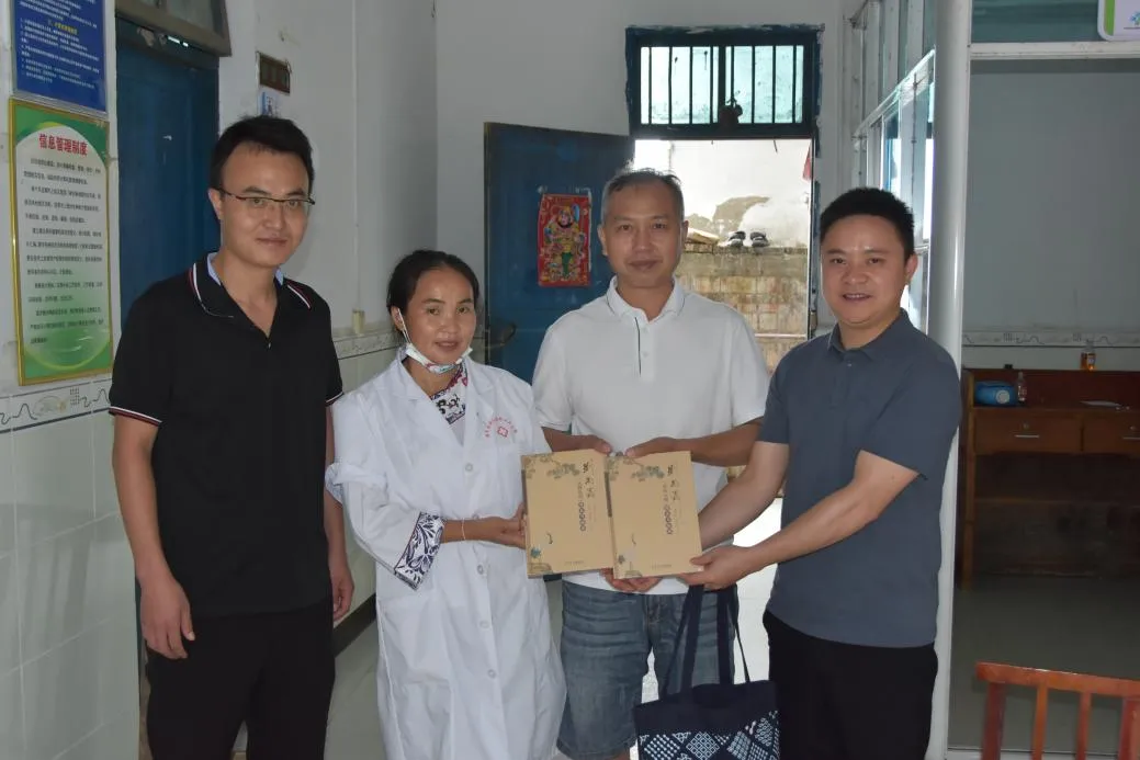 在册亨县双江镇丁马村、洛央村、坝麦村等少数民族村落,实践团成员走村入户为村民测量血压、血糖,送去一些常备药品,并详细讲解药品的使用方法,耐心解答村民的健康咨询。随后还去探望了在村的我校大学生,关心他们的生活学习情况,赠予他们《刘尚义“从膜论治”理论与临床》和《刘尚义“引疡入瘤”理论与临床》两部著作,鼓励他们学习好中医知识,弘扬好中医精神。