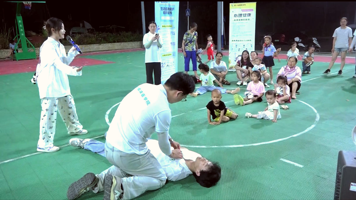 最后,在双江镇体育馆,实践团成员为当地村民进行文艺汇演,并对现场村民开展了科普宣讲,普及心理健康知识,现场观众纷纷表示此类科普非常受用,增强了他们的生命意识,也掌握了一些紧急救援的方法。