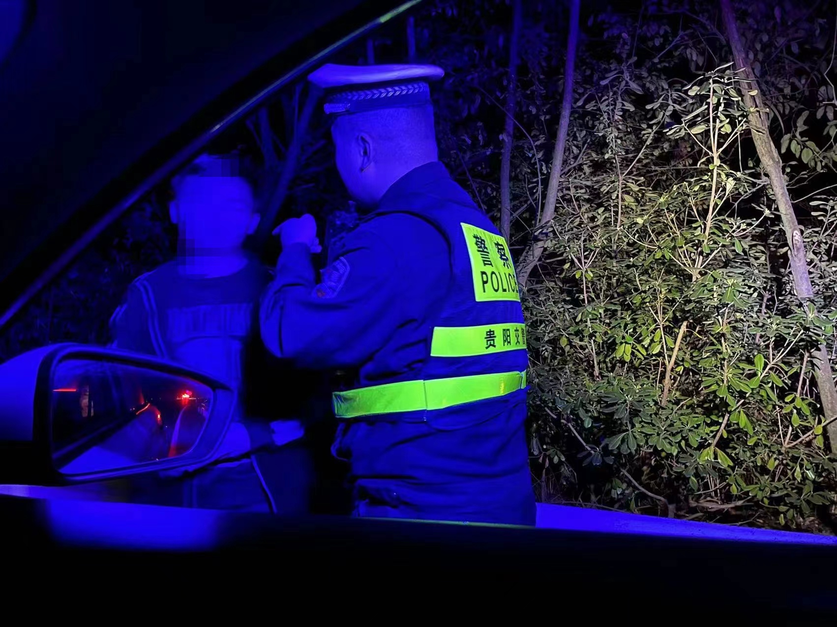 2023年3月14日晚22时许,正在云开二级公路巡逻的贵阳乌当交警二中队民警突然发现,在漆黑的公路上居然有一个学生在步行。由于当时天色已晚,云开二级公路又无照明设施,夜间人在路上行走不容易被看见,非常的不安全。民警立即将警车靠边,把学生带上车,撤离到安全地段。
