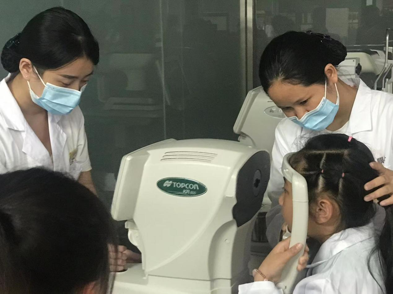 孩子们在体验眼科检查仪器