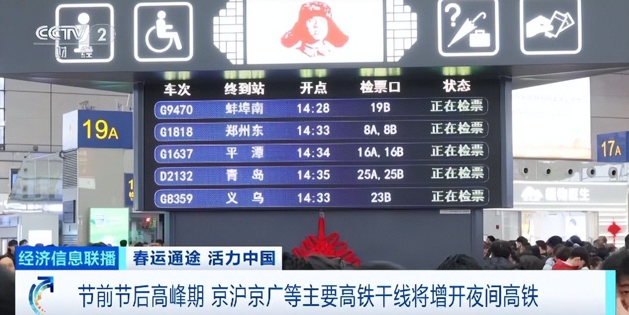 另外,为应对客流高峰,国铁集团将在节前节后高峰期,在京沪、京广、沪昆等主要高铁干线通道增开夜间高铁,车票预售期统一为开车前5天。目前,节前夜间高铁列车车票已陆续开售,2月8日至16日,铁路上海站目前共加开临客列车1212趟。