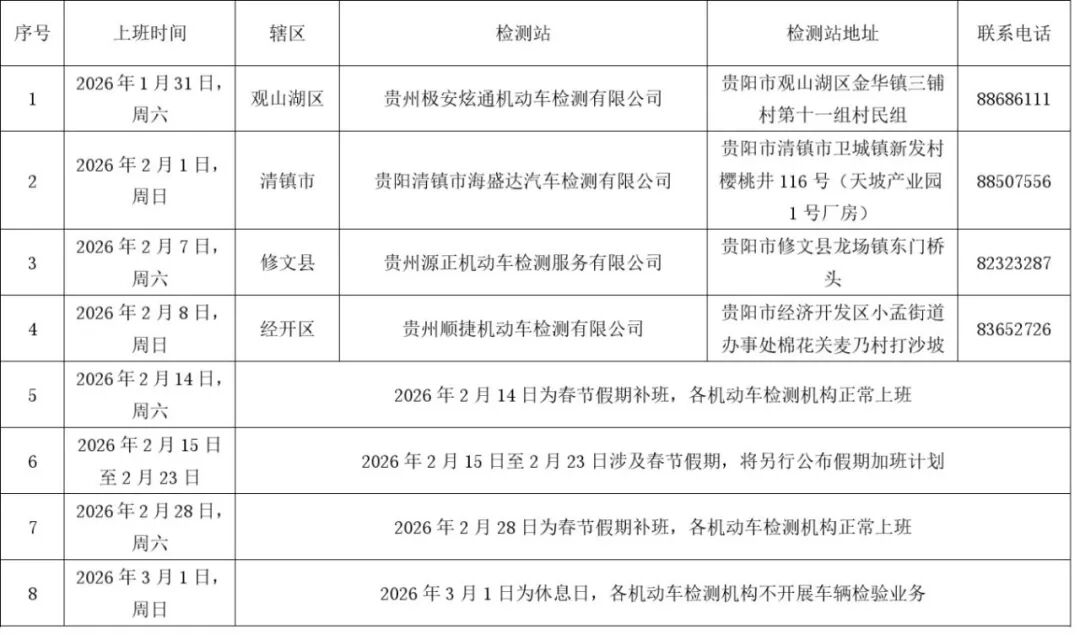 贵阳车主注意!2月周末,机动车可在这些地方进行检验→