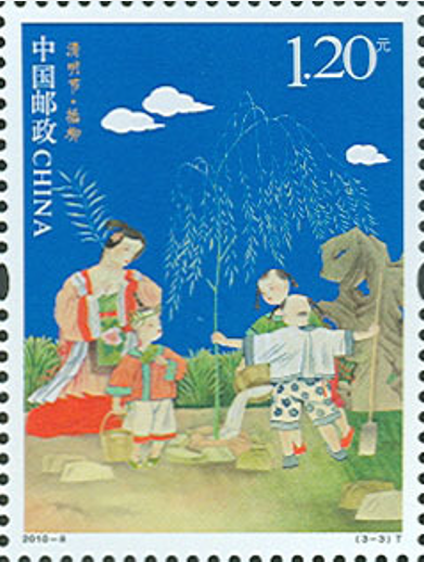 清明时节,春回大地,万物复苏。清明节又叫踏青节,是中国传统节日之一。中国邮政于2010年4月5日发行《清明节》特种邮票,一套3枚。