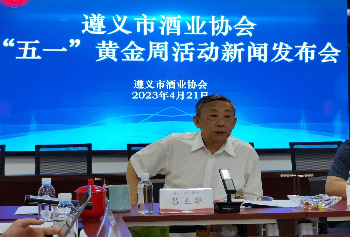 4月21日,由遵义市酒业协会举办的“五一黄金周活动”新闻发布会在酱酒小镇举行,汇川区政协副主席、区工商联主席孔令军,遵义市酒业协会常务副会长、秘书长吕玉华,遵义市酒业协会副秘书长敖科凯出席并发言,本地及业内外数十家媒体到场参与。会上,敖科凯介绍了本次活动情况,孔令军通报活动保障工作情况。