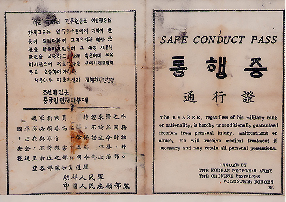 抗美援朝纪念馆新征集代表性文物:莫若健缴获美国空军驾驶员的安全通行证