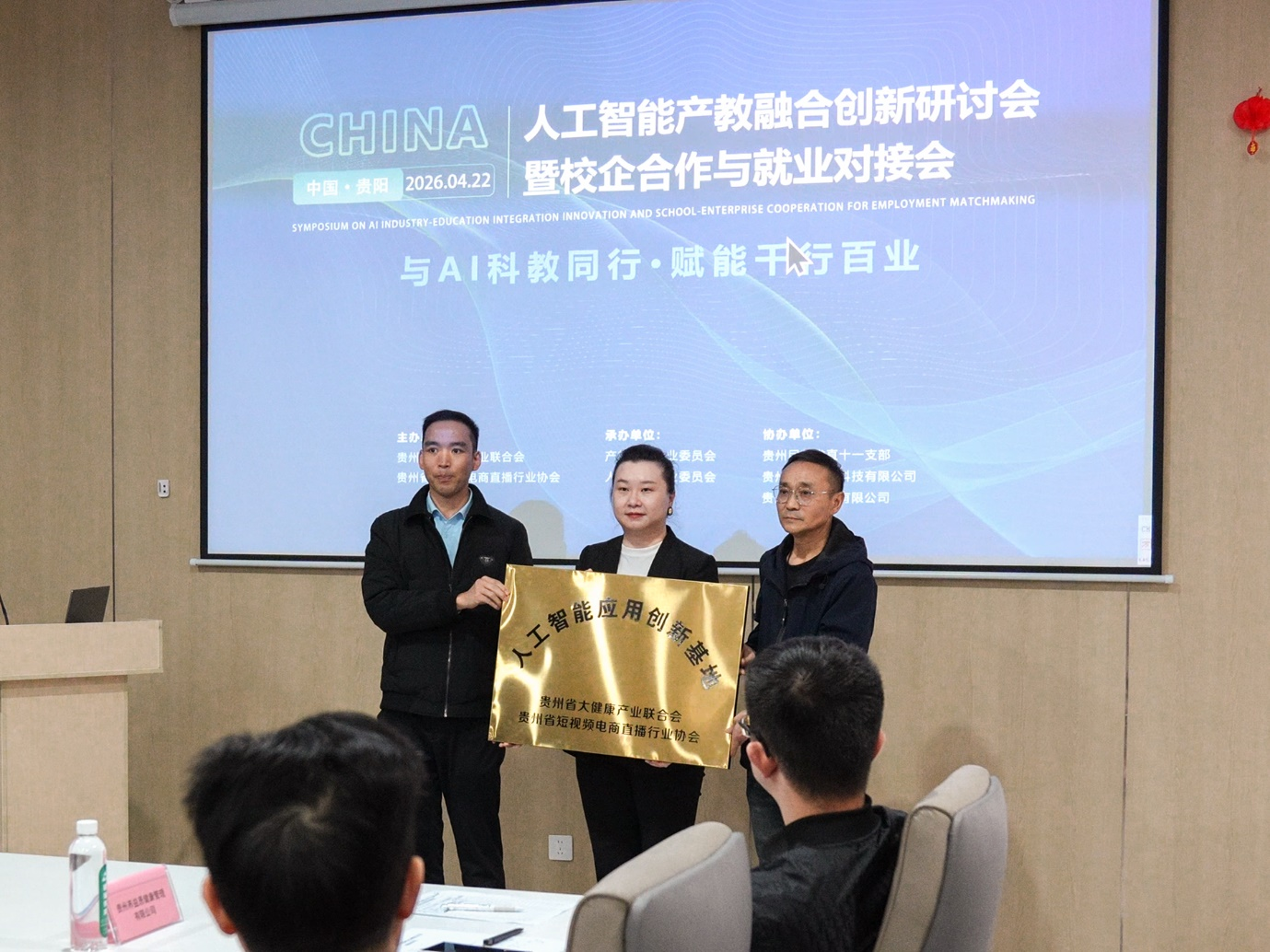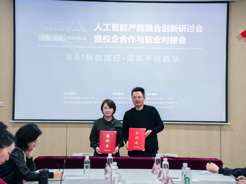 4月22日,由贵州省大健康产业联合会、贵州省短视频电商直播行业协会主办的“2026年人工智能产教融合创新研讨会暨校企合作与就业对接会”在贵阳经开区人工智能应用中心成功举行。来自有关院校、行业商协会、企业及相关领域的嘉宾代表齐聚一堂,围绕人工智能赋能教育、产业协同发展、校企合作对接、人才培养与就业促进等主题展开深入交流,共同探讨贵州人工智能产教融合创新发展的新路径。