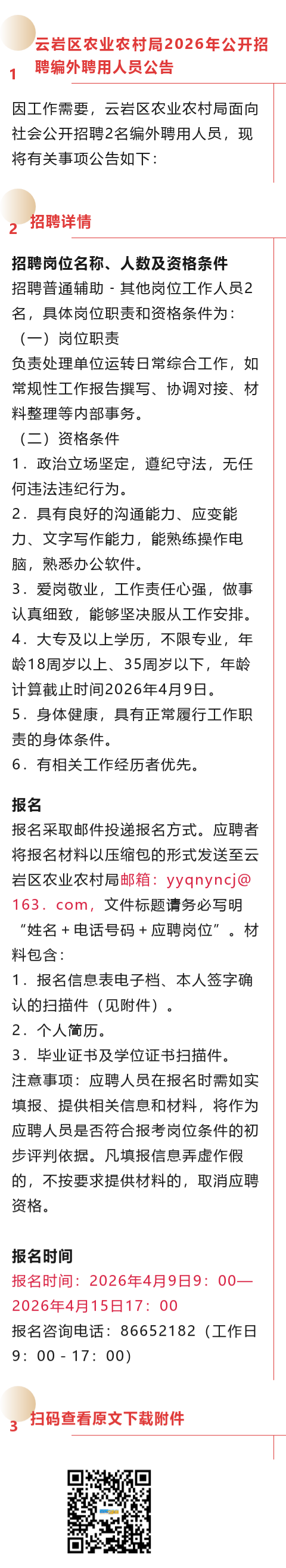 贵阳市云岩区农业农村局招聘!大专起报!