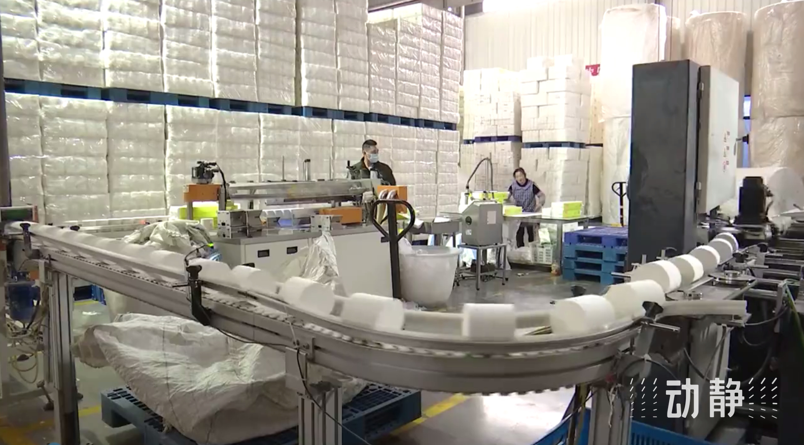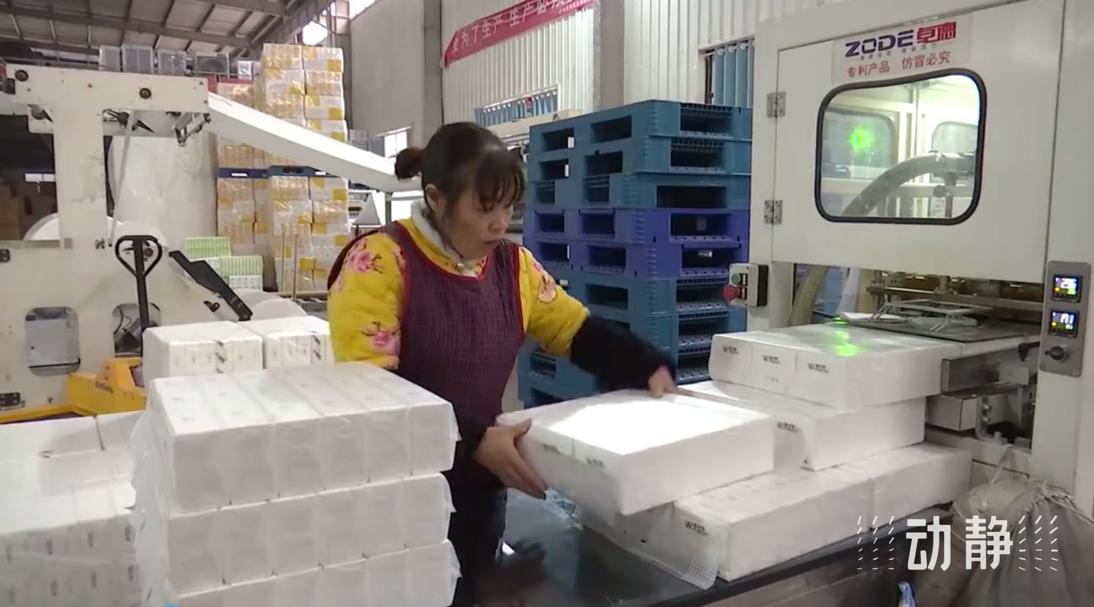 在遵义赤水市这家生产高品质生活用纸企业,机器轰鸣,一条条纸巾加工生产线正高速运转,工人们正忙着打包,备足货源。目前公司订单已经排到了春节。