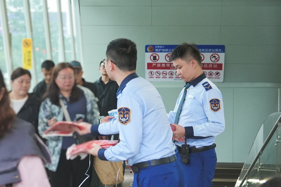 假期里,贵阳地铁近2000名工作人员坚守一线,党员先锋主动靠前,志愿者穿梭忙碌,耐心解答票务疑问、主动提供帮扶老弱病残孕等特殊群体,一句“我来帮您”、一声“小心脚下”、一次“贴心引导”,用细致服务化解“出行难题”,用实际行动诠释“服务为民”;同时,车站客服中心配备免费饮水设备,备齐女婴用品、针线盒、轮椅、应急药品等便民物资,16个站点提供免费行李寄存服务,累计服务乘客2500余人。