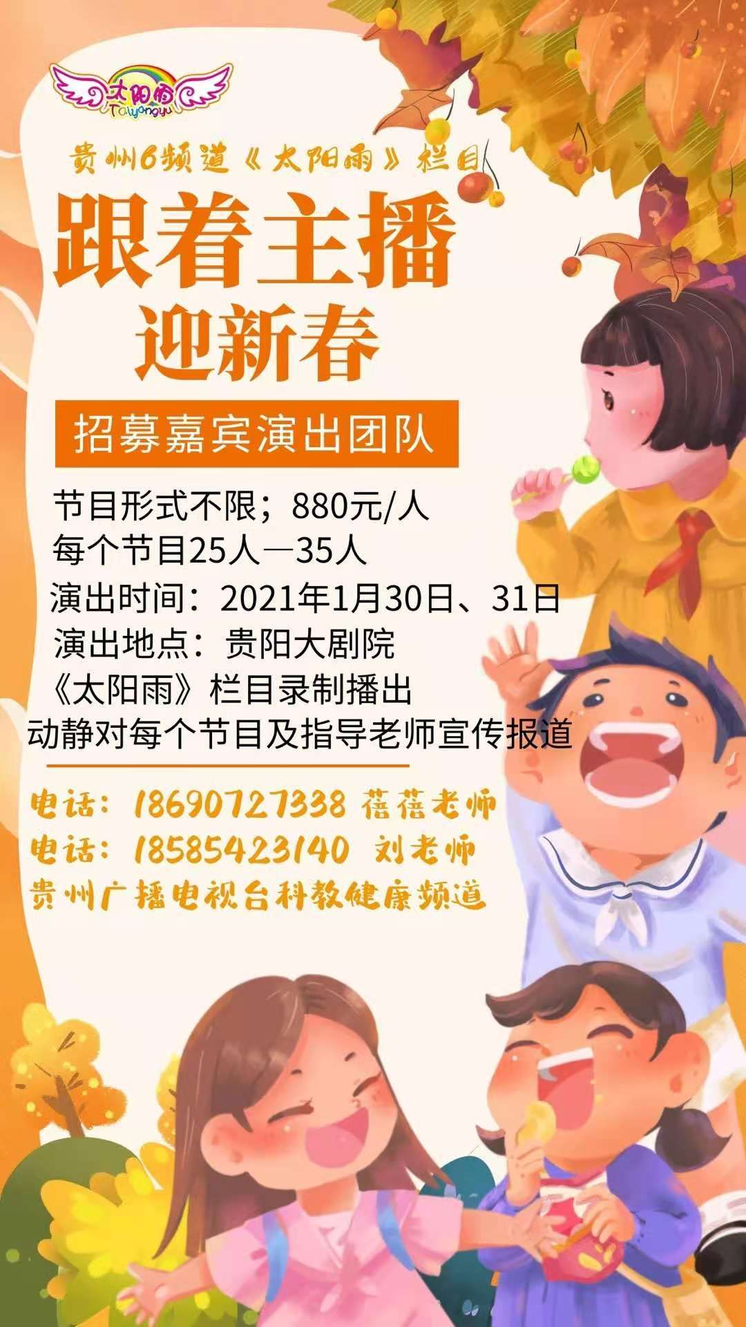 贵州广播电视台科教健康频道《太阳雨》栏目“2021年跟着主播迎新春”春节晚会时间敲定啦!