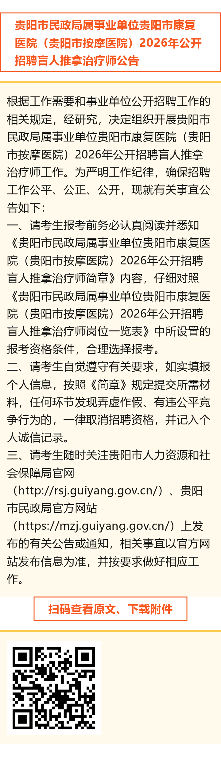 贵阳市民政局属事业单位贵阳市康复医院(贵阳市按摩医院)招聘!报名时间:4月7日-14日!