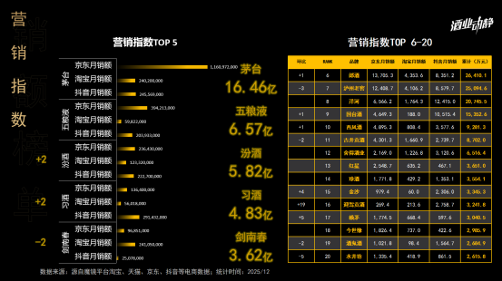综合热销、曝光、公关三大维度,十二月中国白酒品牌价值指数最终排名再次发生变化。
