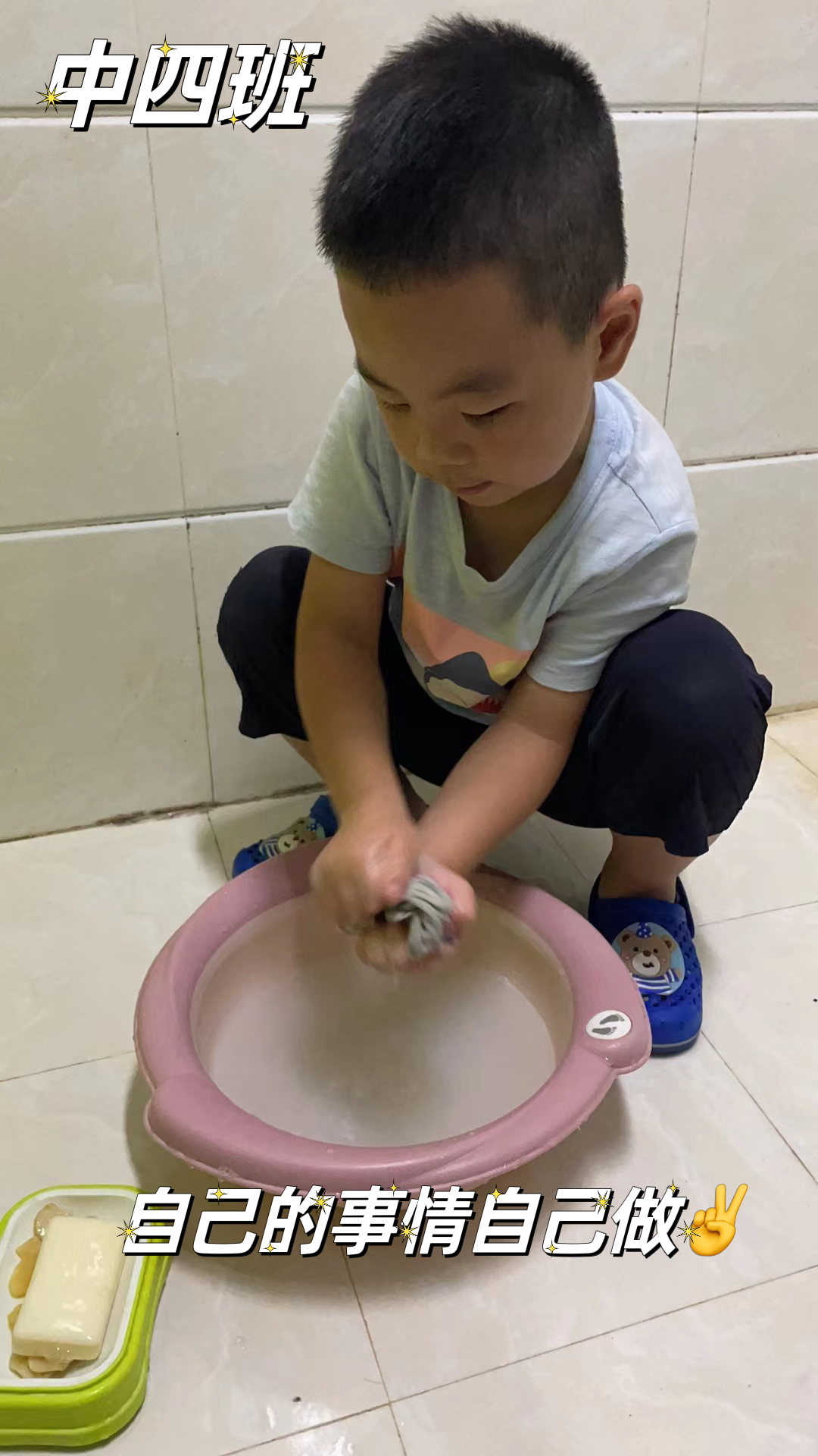 南明区实验幼儿园中四班的小朋友在帮忙摘菜、自己动手洗袜子