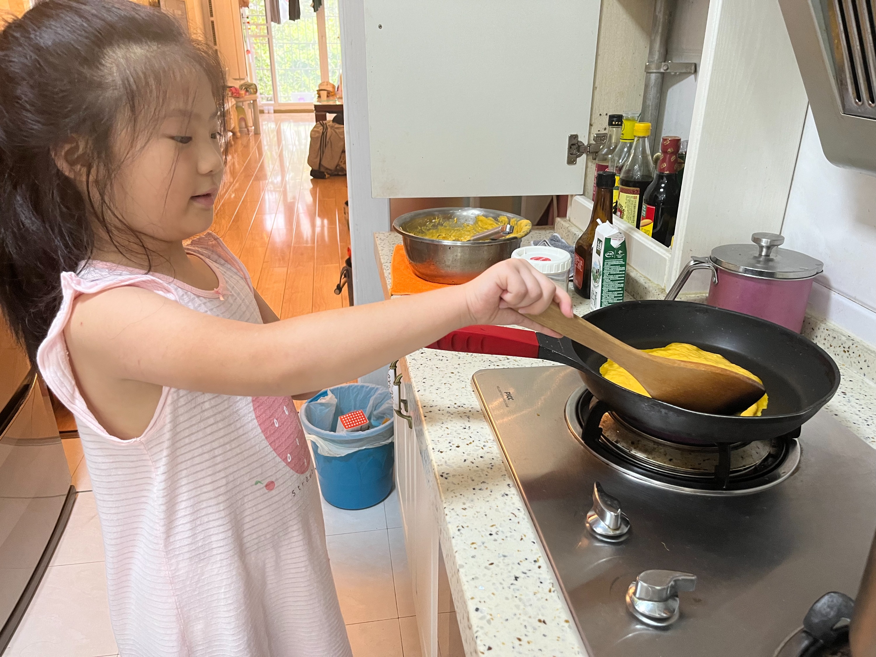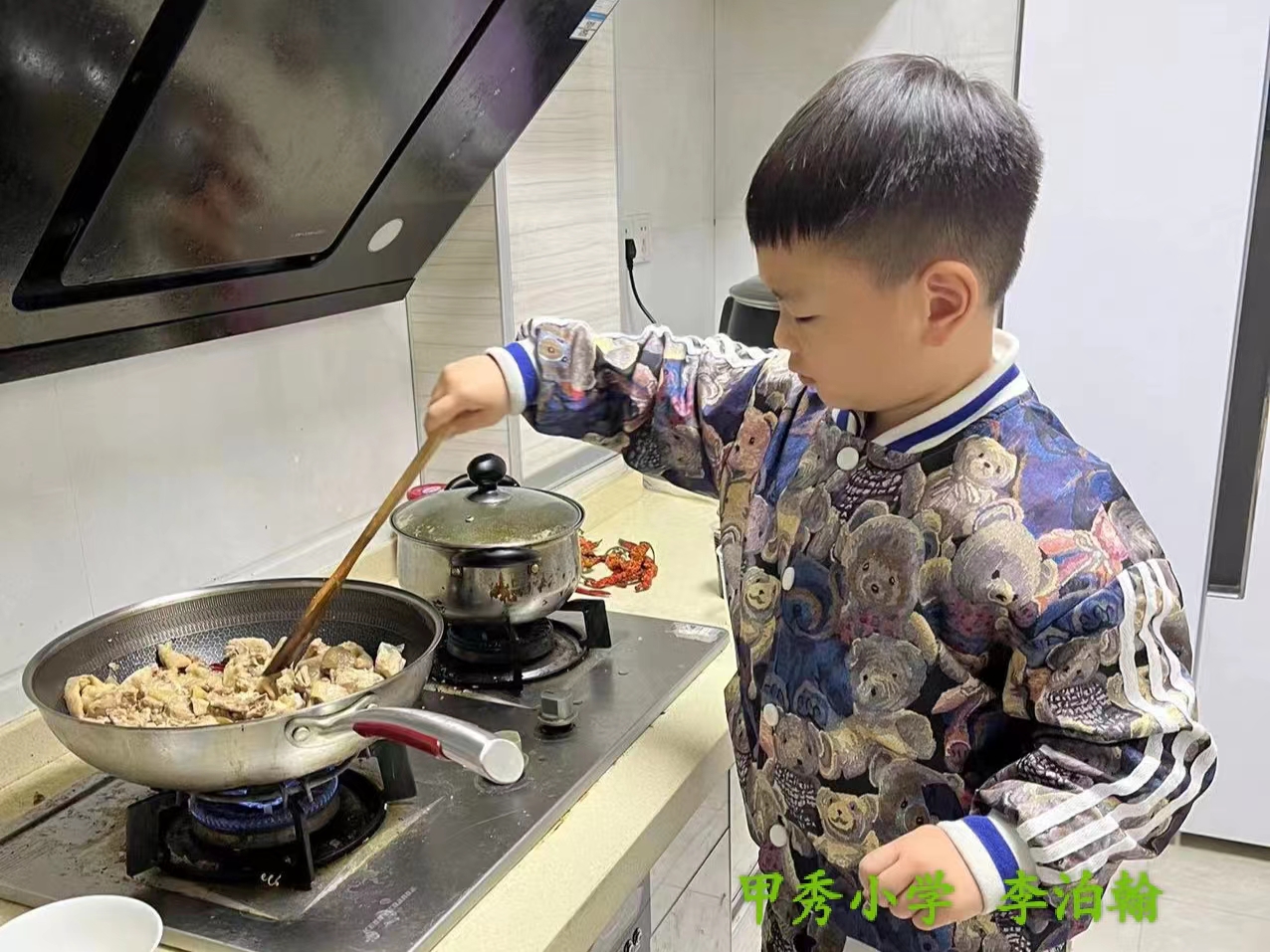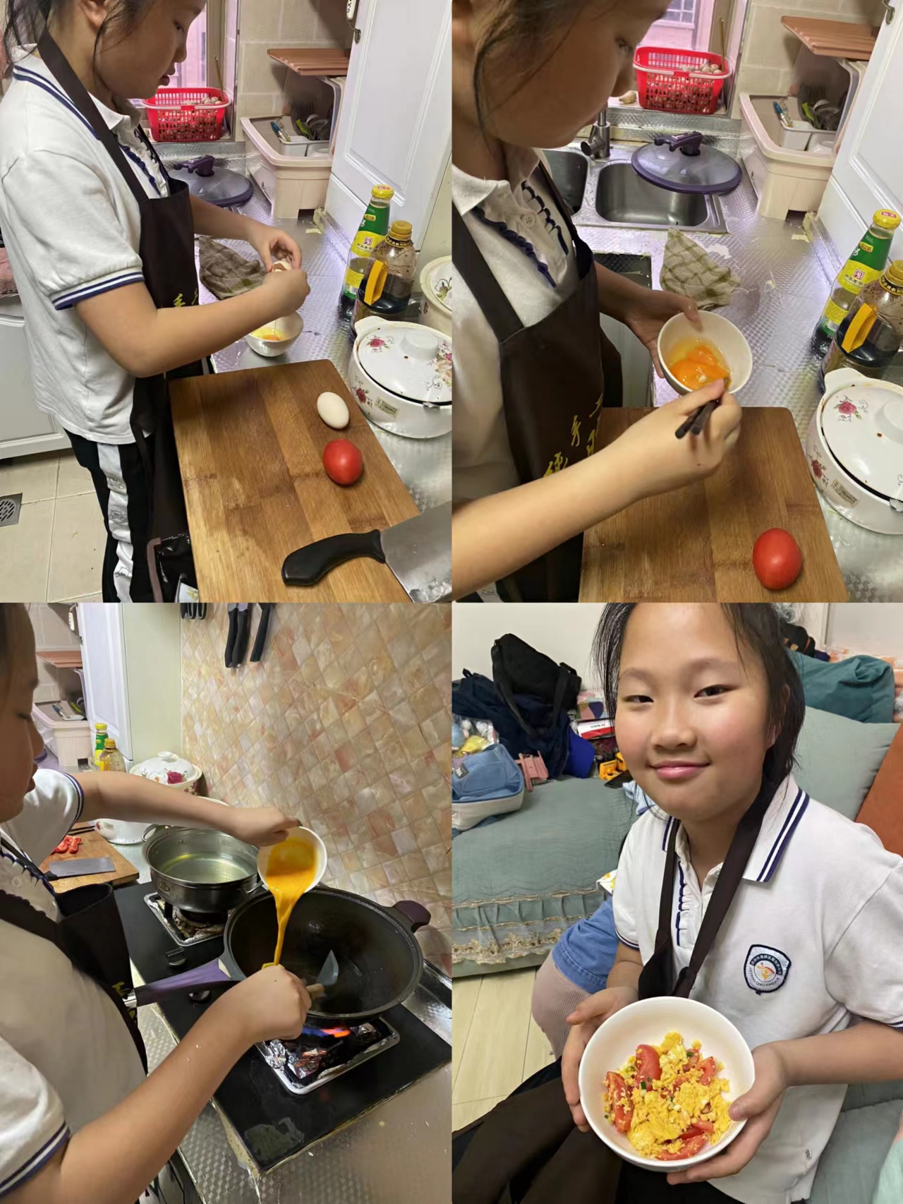 解放桥小学的同学们在尝试自己制作一道菜、尝试自己洗碗、自己养护花草